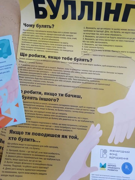 Представники Білозерського офісу Мережа правового розвитку В'ячеслав Лящ та Наталья Юшко надали інформацію про діяння учасників освітнього процесу, які полягають у психологічному, фізичному, економічному, сексуальному насильстві, у тому числі із застосуванням засобів електронних комунікацій, що вчиняються стосовно малолітньої чи неповнолітньої особи або такою особою стосовно інших учасників освітнього процесу, внаслідок чого могла бути чи була заподіяна шкода психічному або фізичному здоров’ю потерпілого,